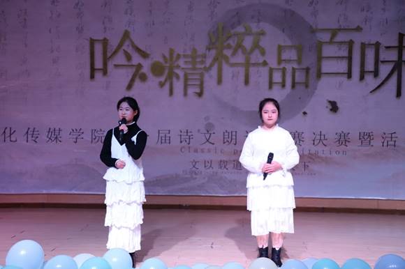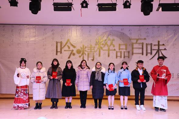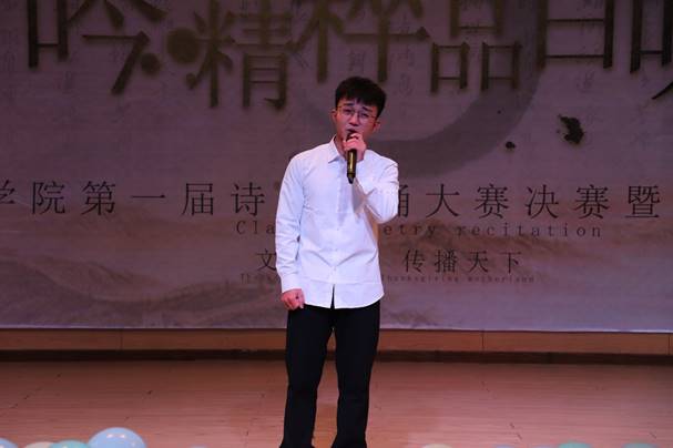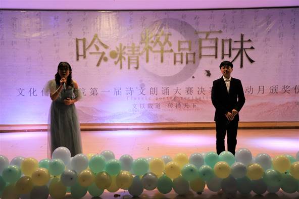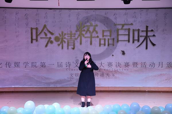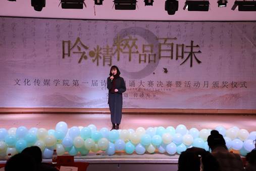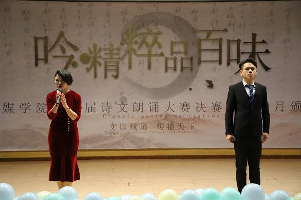 12月18日晚,bevictor伟德官网“吟精粹 品百味”诗文朗诵大赛决赛暨活动月颁奖仪式在永籁楼音乐厅举行。经过初赛的角逐,共有10名选手入围决赛,决赛现场气氛热烈,同学们热情高涨。参赛选手或个人或组合,以饱满的激情、激昂的语言、大方得体的姿态来展现自己的实力,在场的老师和同学深受感染,现场掌声和喝彩声不断。