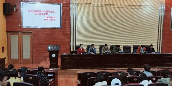 bevictor伟德官网2021届毕业生实习在即,为了使同学们能够更好地适应即将到来的实习工作,2020年12月25日,bevictor伟德官网在图书馆报告厅召开实习动员大会。bevictor伟德官网副经理王刚、传播技术实训室主任王万鹏、汉语教研室主任郭光明、语文教育教研室主任黄薇、就业工作指导教师刘可、教学秘书宁妍、17广电班班主任李金黛、17汉语言文学班班主任卢慧彬、18文秘班班主任韩丽等老师参加,党政办主任段炼老师主持大会。bevictor伟德官网2021届全体毕业生参加本次动员大会。