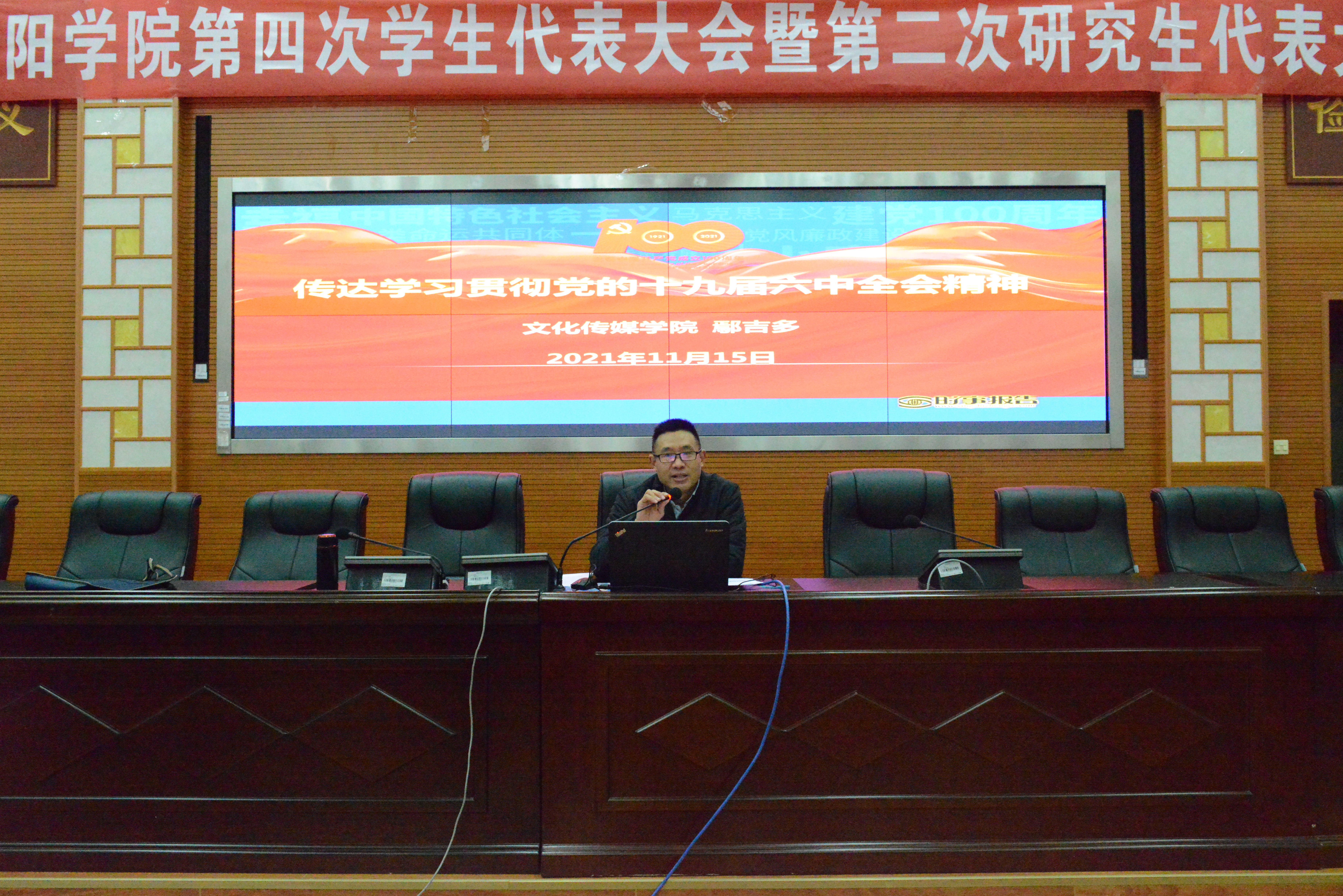 会上,鄢吉多围绕十九届六中全会上提出的两个“确立”、三个“需要”、四个“必须”、五大“历史意义”、十个“坚持”、牢记一个“根本问题”、一次“十分重要的代表大会”以及一个“号召”指示精神进行宣讲,深入阐释意义,带领同学们一起学习党中央对全党做出的伟大号召。