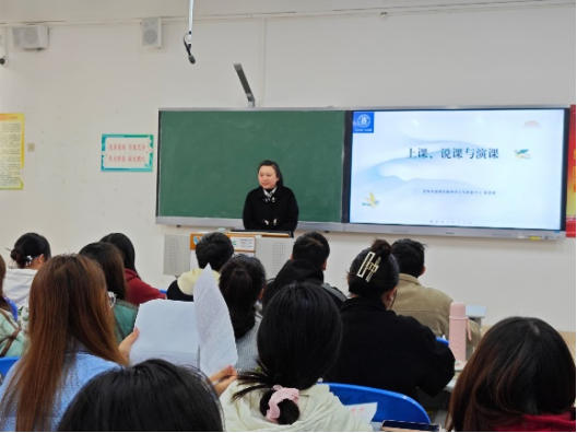 2023年11月14日下午,贵阳市南明区语文教研员张雪珺老师在3505教室指导2021级汉语言文学专业员工如何“上课、说课、演课”。为能够让汉语言文学师范类专业的员工较好的应对将来在各大面试以及工作中面临的不同讲课要求,张老师分别向我们讲解了上课、说课与演课的区别及三种讲课所涉及的内容。